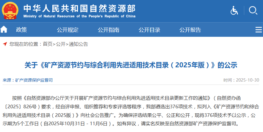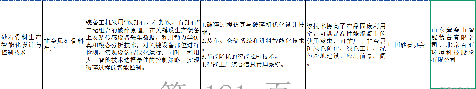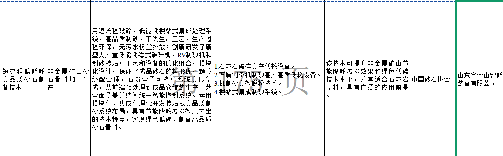 導(dǎo)讀:近日,自然資源部公示《礦產(chǎn)資源節(jié)約和綜合利用先進適用技術(shù)目錄(2025 版)》,山東鑫金山智能裝備有限公司的《短流程低能耗高品質(zhì)砂石制備技術(shù)》《砂石骨料生產(chǎn)智能化設(shè)計與