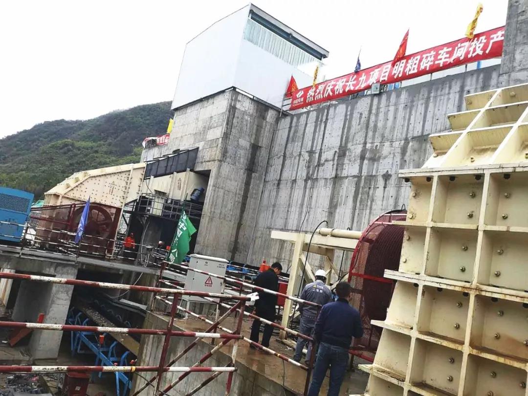 該項目配置了6套鑫金山JSPCD2626型新型單段重錘反擊破作為砂石骨料生產設備主機,實現了短流程生產。自正式投產以來,在飽和給料的情況下,每臺主機產量檢測均達2600t/h,完全達標達產且大幅超出設計產能(2000t/h),折合噸破碎電耗僅0.3度,是當之不愧的高效節能破碎機。